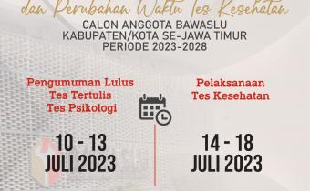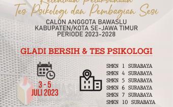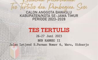 Berita humas Rabu, Juli 12, 2023 - 09:05 <a>PERPANJANGAN PENGUMUMAN HASIL TES TERTULIS DAN TES PSIKOLOGI DAN PERUBAHAN WAKTU PELAKSANAAN TES KESEHATAN</a> File Pendukung Klik Di sini humas Minggu, Juli 9, 2023 - 23:55 17 Parpol di Kota Kediri Melakukan Perbaikan Dokumen di Akhir-akhir Waktu Pengajuan Kota Kediri, 09 Juli 2023. Bawaslu Kota Kediri beserta jajaran Ad-Hoc yaitu Panwascam se-Kota Kediri melaksanakan Pengawasan Pengajuan Perbaikan Dokumen DPRD Kota Kediri Pemilu 2024 di KPU Kota Kediri. humas Minggu, Juli 2, 2023 - 05:50 PENGUMUMAN KETENTUAN PELAKSANAAN TES PSIKOLOGI DAN PEMBAGIAN SESI CALON ANGGOTA BAWASLU KABUPATEN/KOTA MASA JABATAN 2023 – 2028 PELAKSANAAN TES PSIKOLOGIHari/Tanggal Pelaksanaan: Selasa - Rabu / 04 s.d 05 Juli 2023 humas Minggu, Juni 25, 2023 - 07:42 PENGUMUMAN KETENTUAN PELAKSANAAN TES TERTULIS DAN PEMBAGIAN SESI<br>CALON ANGGOTA BAWASLU KABUPATEN/KOTA MASA JABATAN 2023 – 2028 Tes Tertulis akan diadakan pada hari Senin s.d Selasa tanggal 26 s.d 27 Juni 2023 bertempat di BKN KANREG II Jalan Letjend S.Parman Nomor 6, Kecama humas Sabtu, Juni 24, 2023 - 13:56 PENGUMUMAN HASIL PENELITIAN BERKAS ADMINISTRASI CALON ANGGOTA BAWASLU KABUPATEN/KOTA PROVINSI JAWA TIMUR ZONA 6 TAHUN 2023 Nomor: 029/TIMSEL.Jl/Z6/06/2023 Dalam rangka melaksanakan amanat Undang-Undang Nomor 7 Tahun 2017 tentang Pemilihan Umum, setelah mela First page « Awal Halaman sebelumnya ‹‹ … Pengawasan 55 Pengawasan 56 Pengawasan 57 Pengawasan 58 Halaman sekarang 59 Pengawasan 60 Pengawasan 61 Pengawasan 62 Pengawasan 63 … Halaman berikutnya ›› Last page Akhir » Pencarian Saran dan Pengaduan Saran dan pengaduan dengan untuk kemajuan Bawaslu Ajukan
