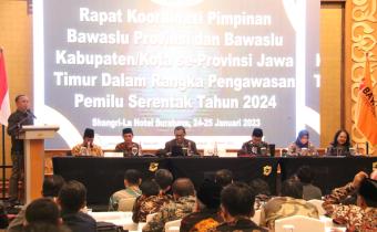 Surabaya, 24-25 Januari 2023. Seluruh Pimpinan Bawaslu Kota Kediri menghadiri undangan Rapat Pimpinan Bawaslu se-Provinsi Jawa Timur di Hotel Shangri-La Surabaya. Rapat ini dihadiri oleh seluruh Pimpinan Bawaslu Provinsi dan Bawaslu Kabupaten/Kota se-Jawa Timur.