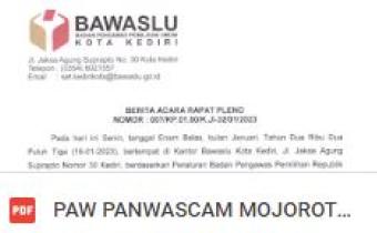 Kota Kediri. Bawaslu Kota Kediri telah melaksanakan Pengawasan Pengumuman Hasil Seleksi Panitia Pemungutan Suara (PPS) se-Kota Kediri pada tanggal 18 Januari 2023 di KPU Kota Kediri.