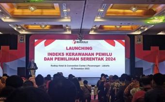 Jakarta, 16 Desember 2022. Koordinator Divisi HP2H, Yusron Khoirul Anam beserta Staf Pencegahan Bawaslu Kota Kediri hadiri aunching Indeks Kerawanan Pemilu dan Pemilihan Serentak 2024 di Redtop Hotel & Convention Center, Pecenongan Jakarta.
