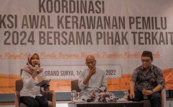 Kota Kediri, 14 Desember 2022. Bawaslu Kota Kediri gelar Koordinasi Deteksi Kerawanan Pemilu tahun 2024 bersama Pihak Terkait di Hotel Grand Surya Kota Kediri.